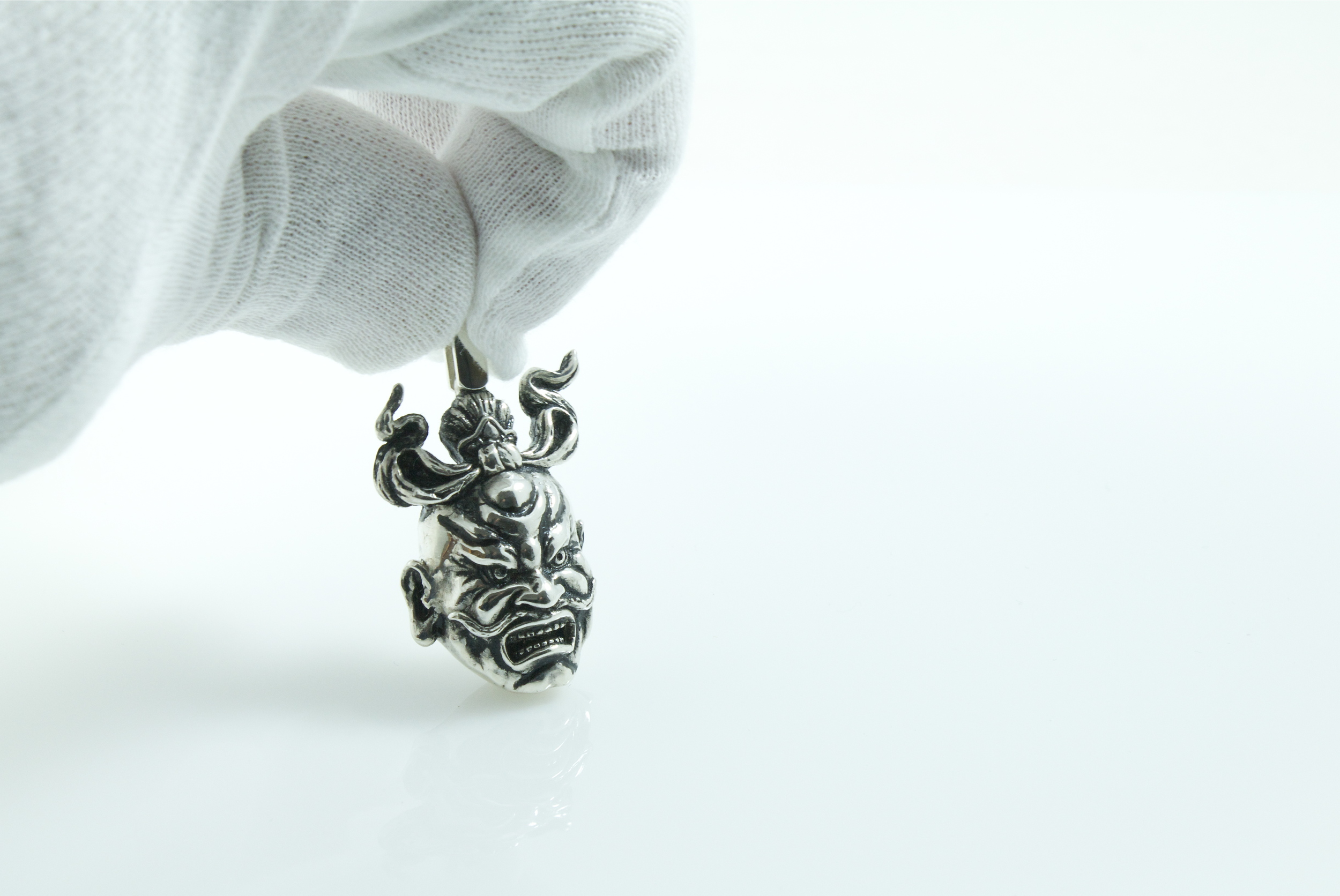 Fudo Myoo represents absolute determination. He has a furious and menacing face, the teeth bite the upper lip, shown by two fangs, one pointing upward (desire for progression), other pointing down representing (eternal compassion). Ultimately representing the luminescent of Buddha.