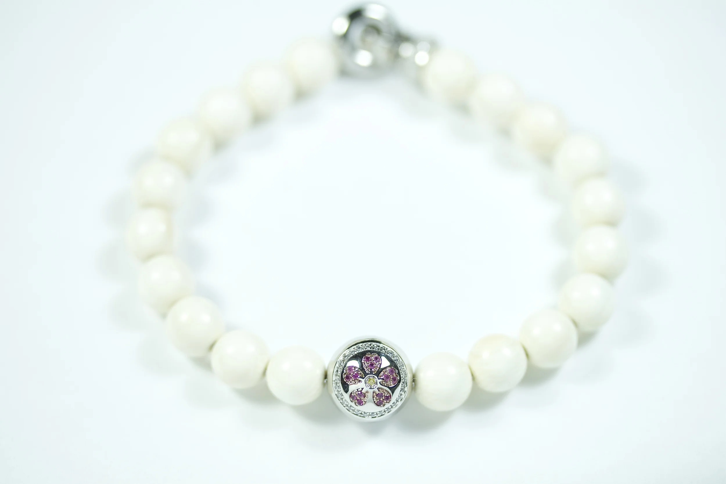 18k Rose Gold With White Diamond Bonji with Turquoise Beaded Bracelet