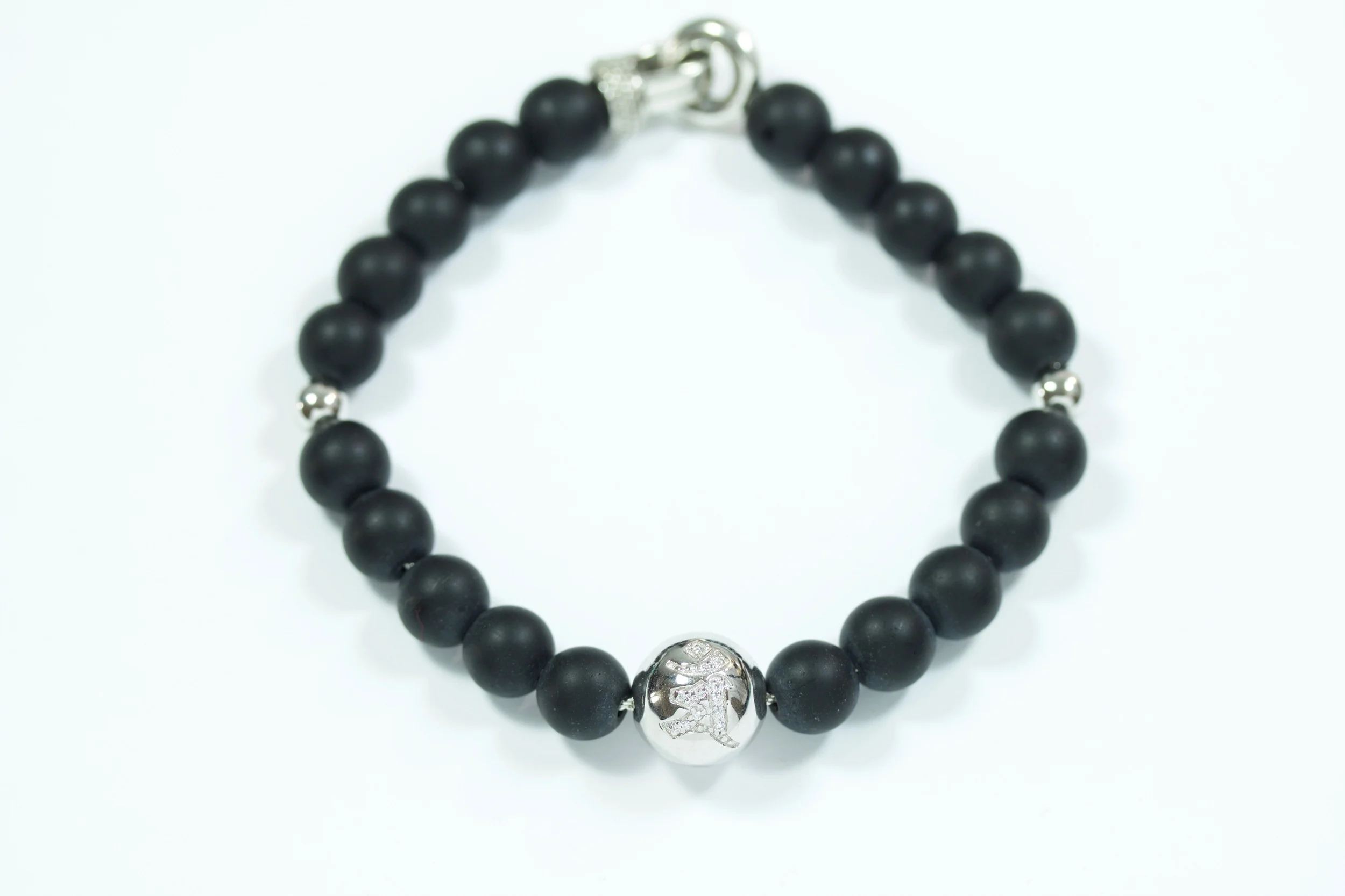 this bracelet is a custom order made out of 925 Sterling Silver with White Diamond Bonji, with Matte Onyx Beaded Bracelet