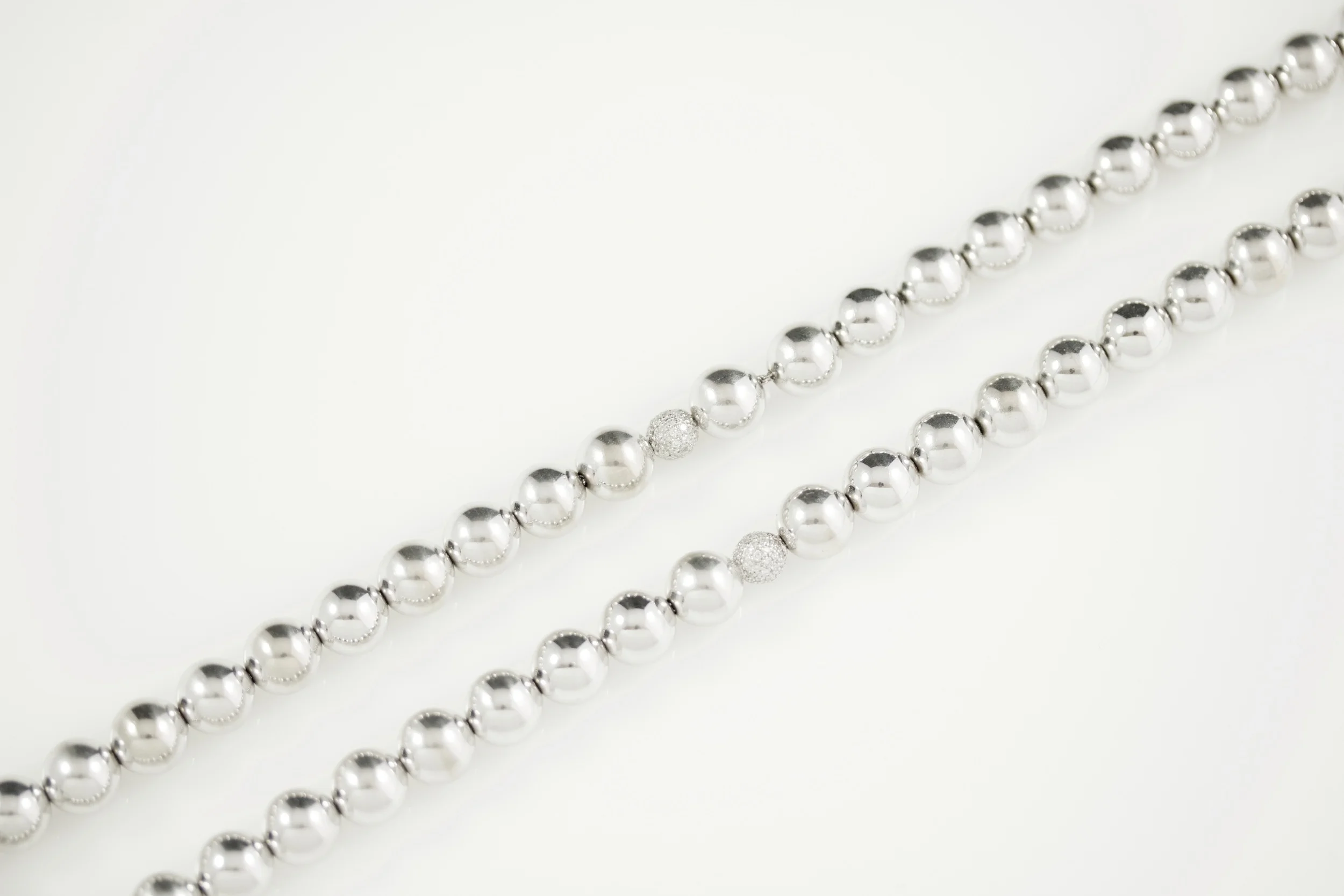 Platinum 950with White Diamond Micro Pave Fully Iced out accent beads with 14k White Gold Beaded necklace