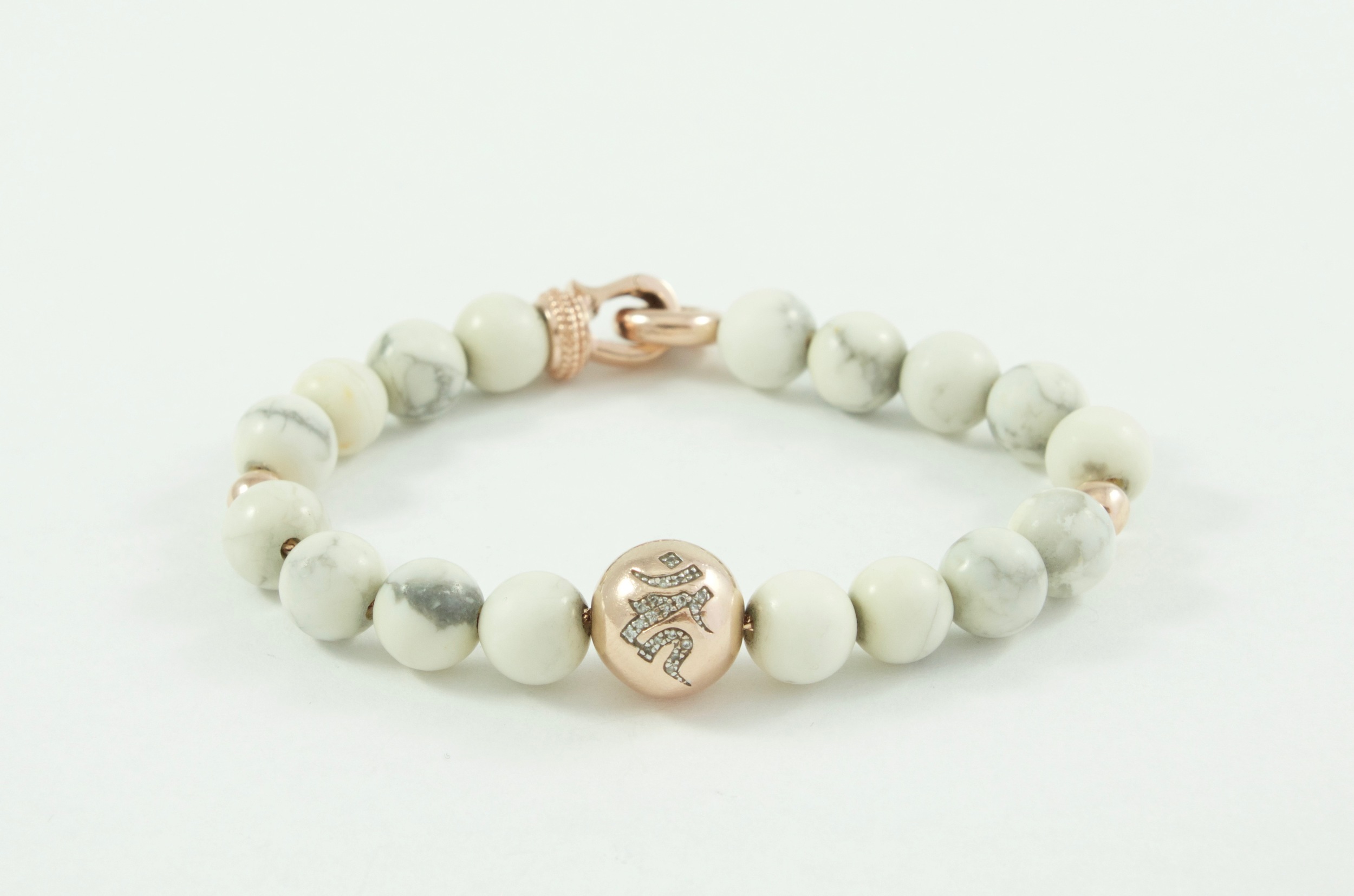 14k Rose Gold With White Diamond Bonji with Howlite Beaded Bracelet