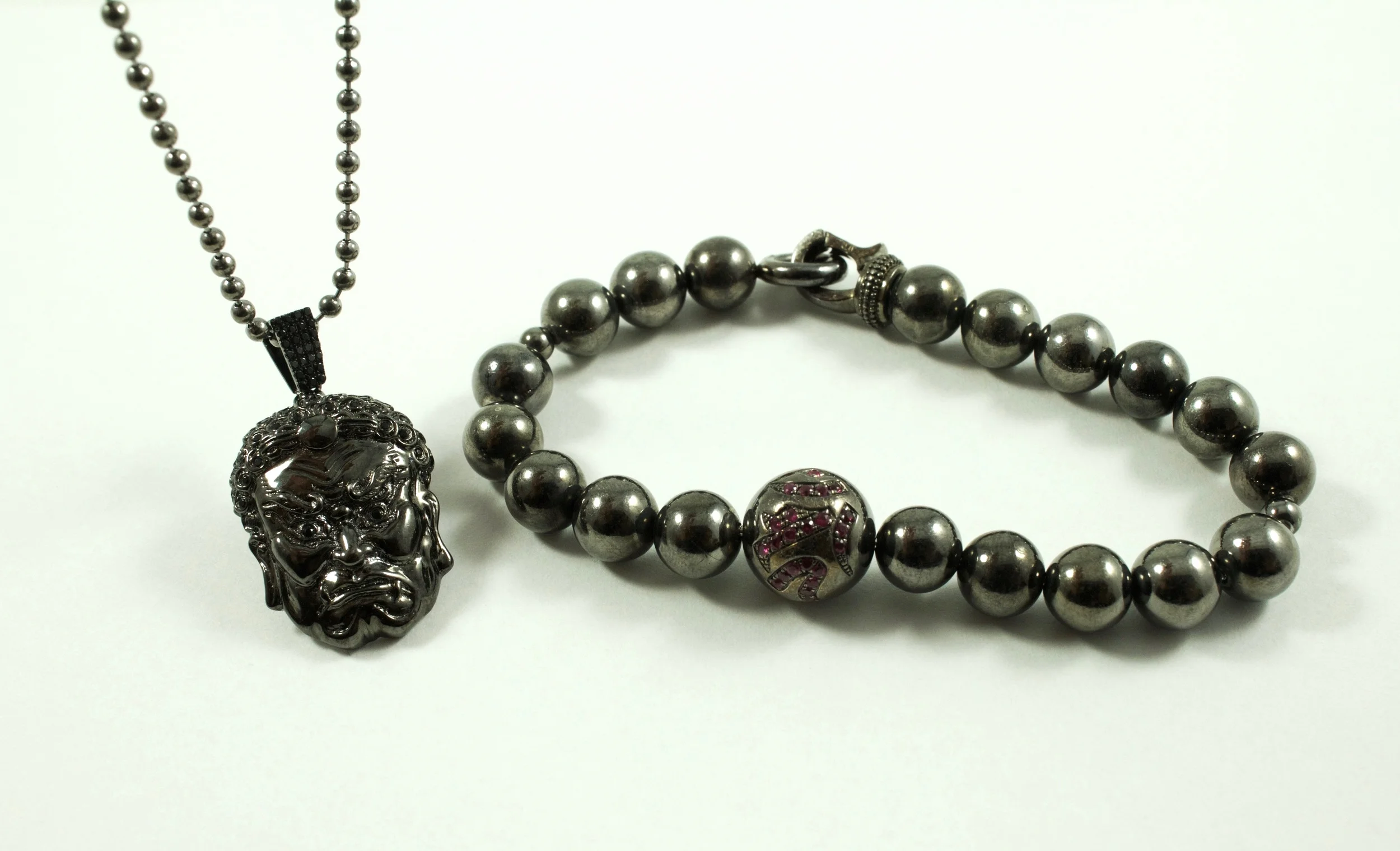 Tags Fudo Myoo, Fudo, Black, Rhodium, ruby, pendant, bracelet, immovable one