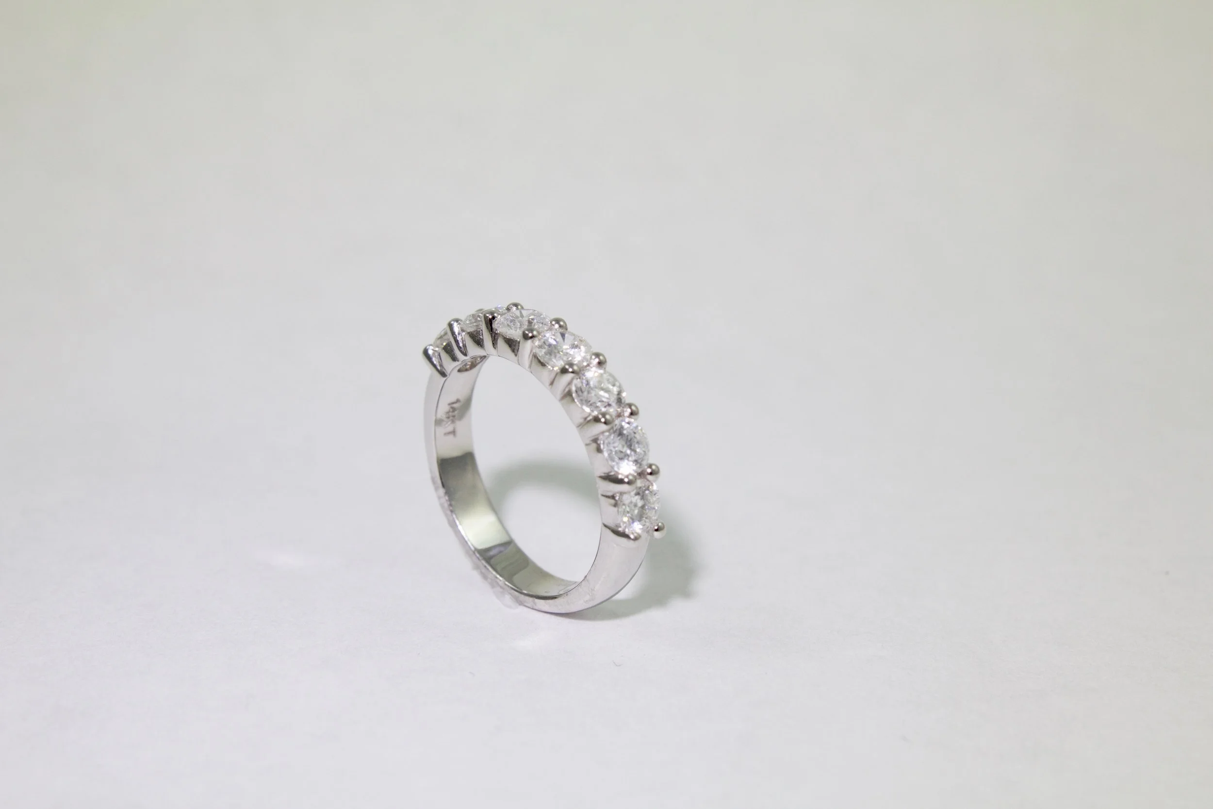setting band ring with a full circle of round brilliant diamonds in 14k white gold. 3.3mm wide.