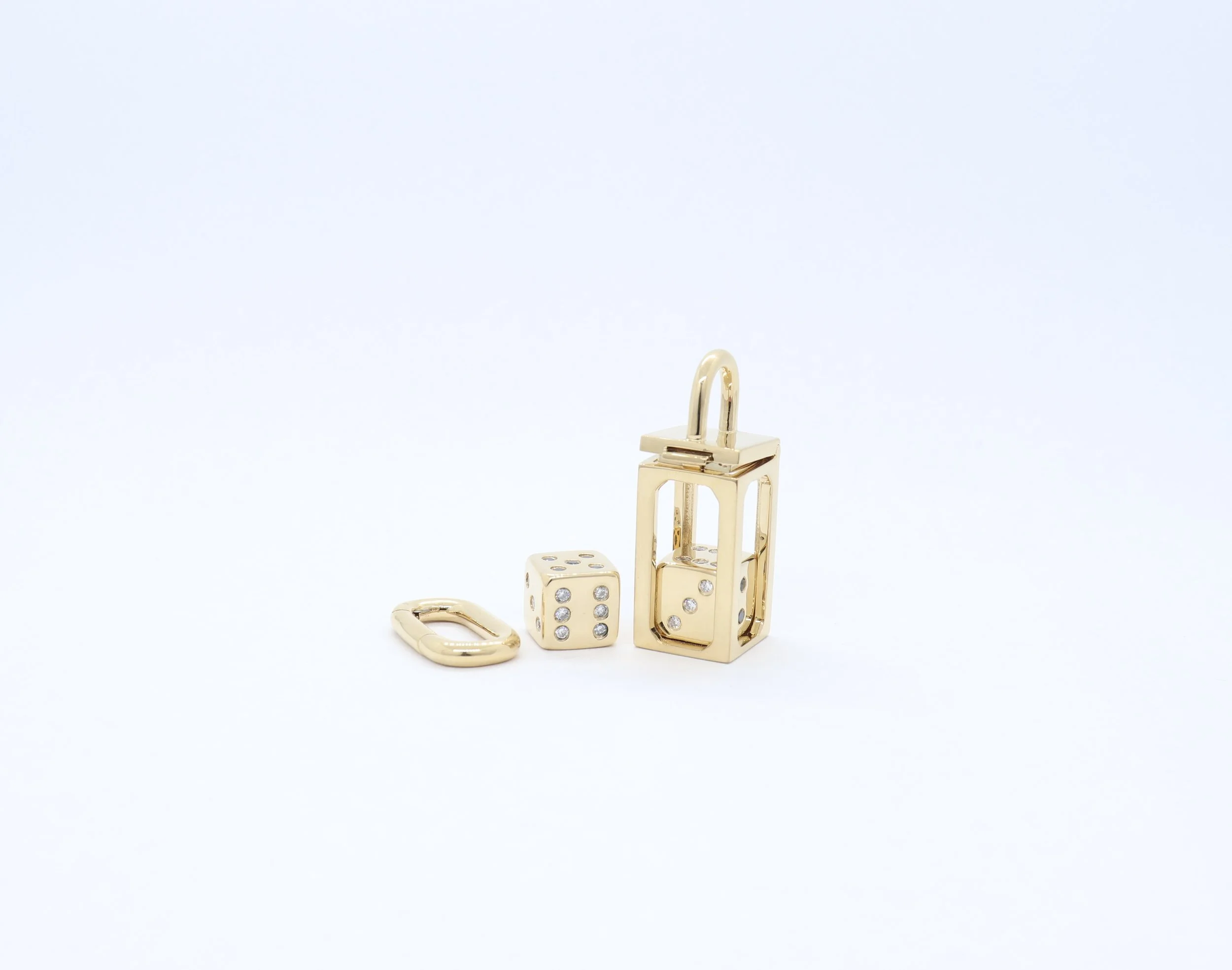 Solid 18kt yellow gold with white diamonds dice holder charm pendant