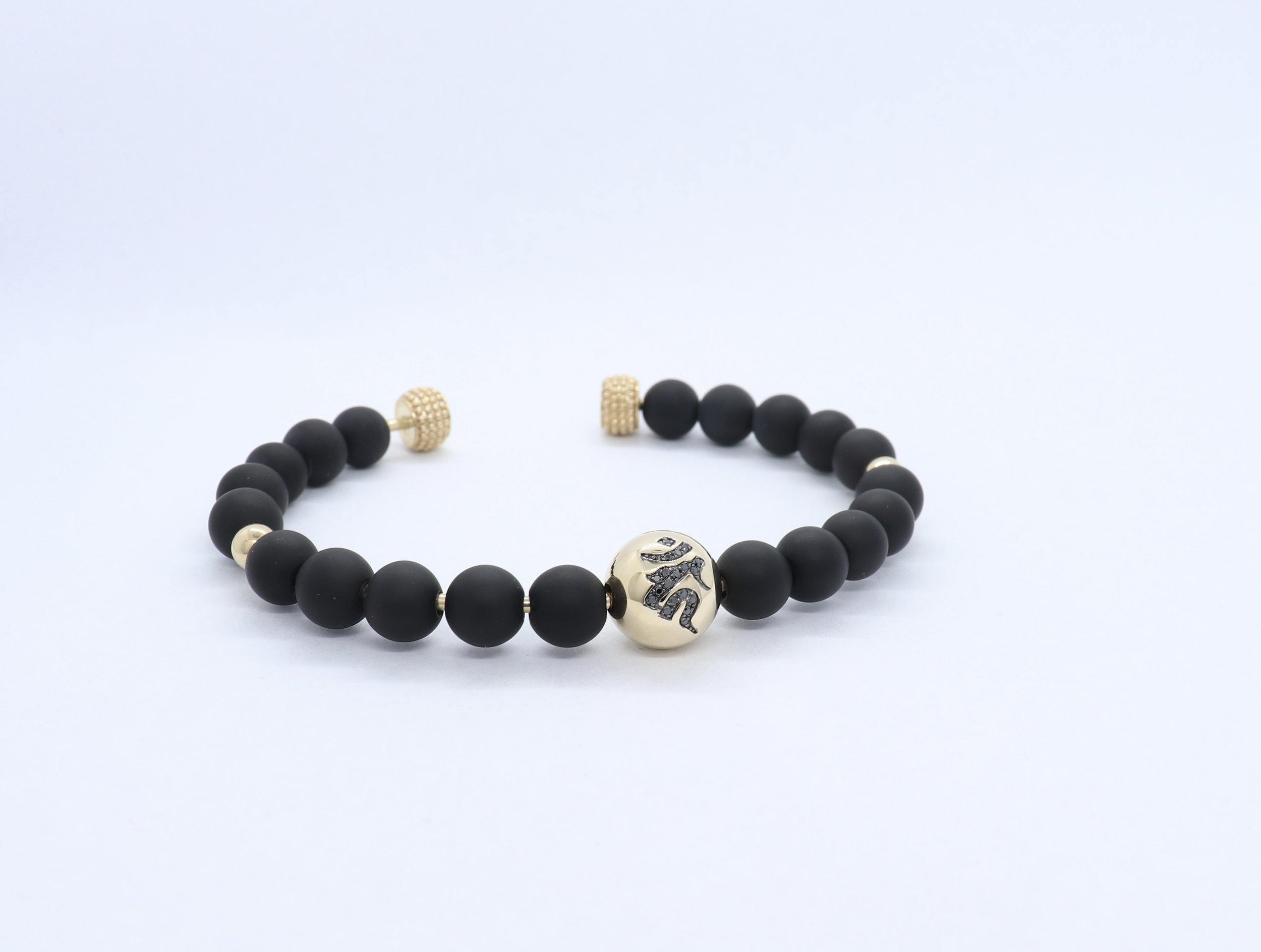 14kt yellow gold Fudo myoo/Kaan Black diamond bonji matte onyx beaded cuff bracelet