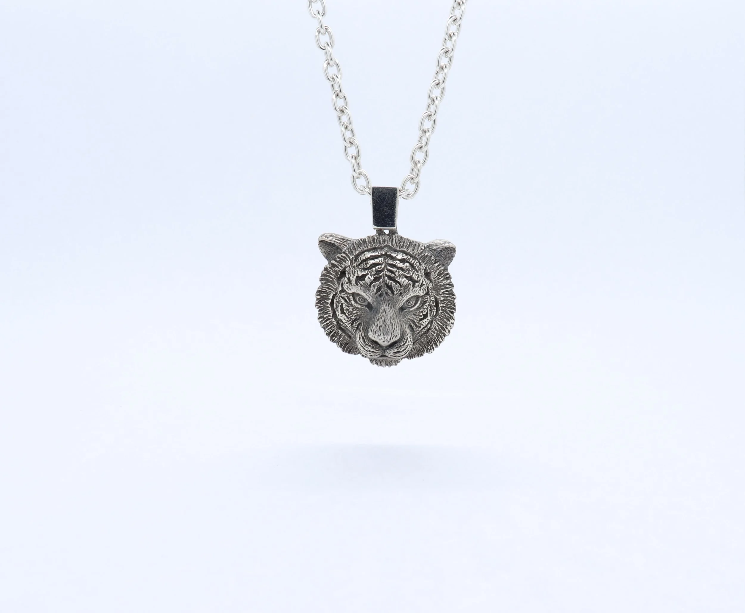 925 Sterling silver Tora/Tiger pendant (white rhodium finish)